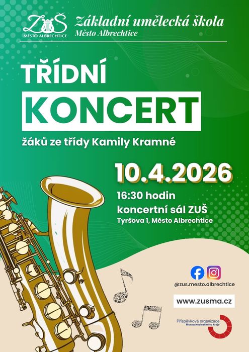 třídní koncerty pokračují a již se můžete těšit na žáky ze třídy paní učitelky Kamily Kramné. Koncert bude jako vždy velmi pestrý, díky nevšední nástrojové barevnosti a repertoárové rozmanitosti.