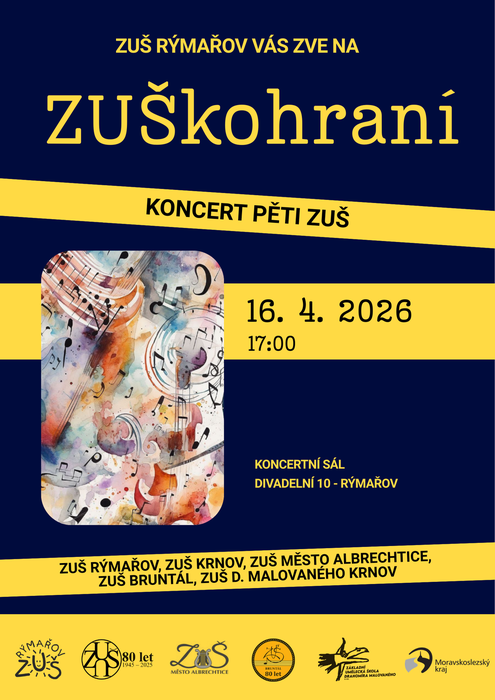 Tentokrát se žáci ze ZUŠ Krnov, ZUŠ Drahomíra Malovaného, ZUŠ Rýmařov, ZUŠ Město Albrechtice a ZUŠ Bruntál sejdou ke společnému koncertu v RÝMAŘOVĚ.